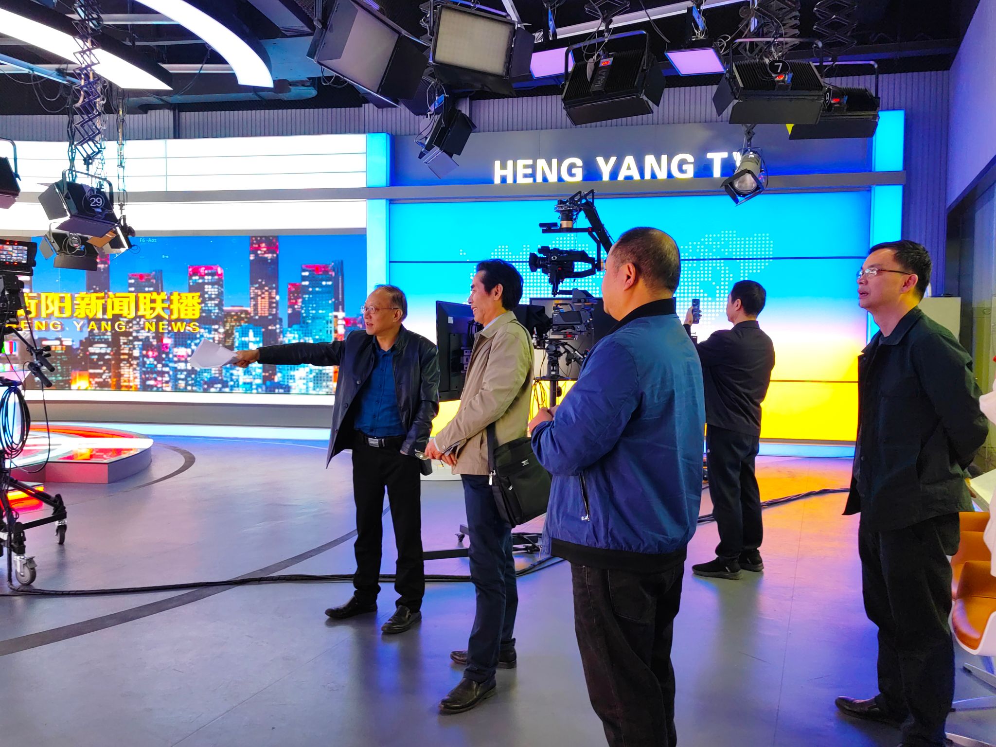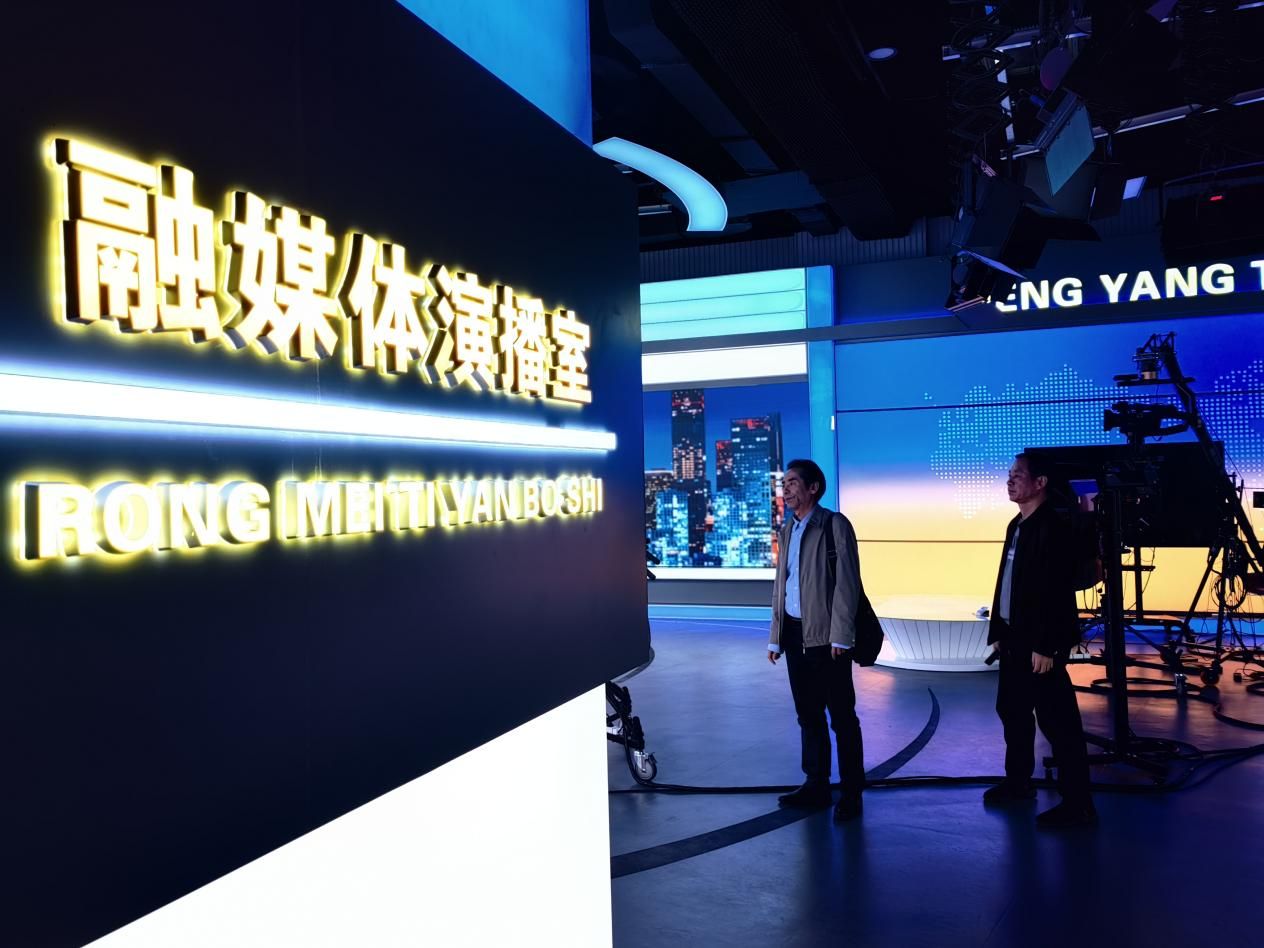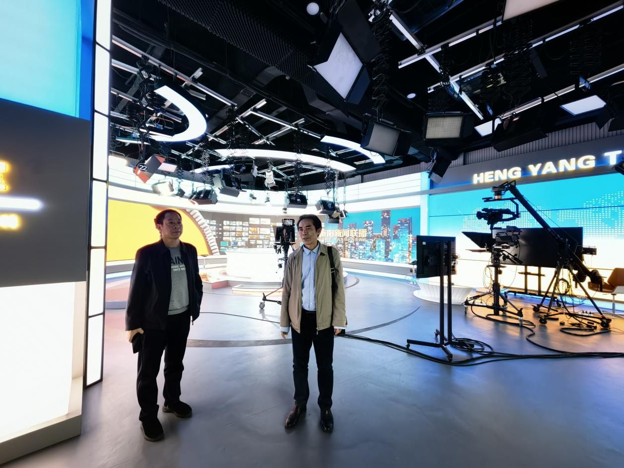 2024年10月29日下午,公司党总支书记彭晖、经理彭军辉、副经理罗兵一行来到衡阳市广播电视台实践教学基地进行考察,实地走访了电视台演播大厅、电视新闻录制口播室、视频编辑机房、电视新闻合成制作室、广播录音棚、融媒体演播室、电视节目播出控制中心等实践教学场所。衡阳市广播电视台副台长肖雄、总编室主任全青松等陪同并对实践教学基地进行介绍。