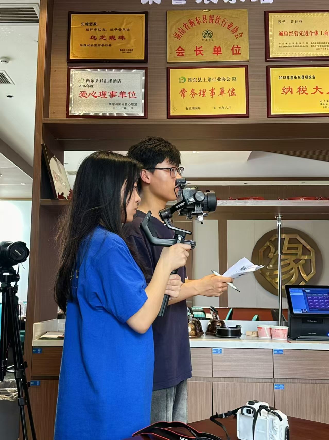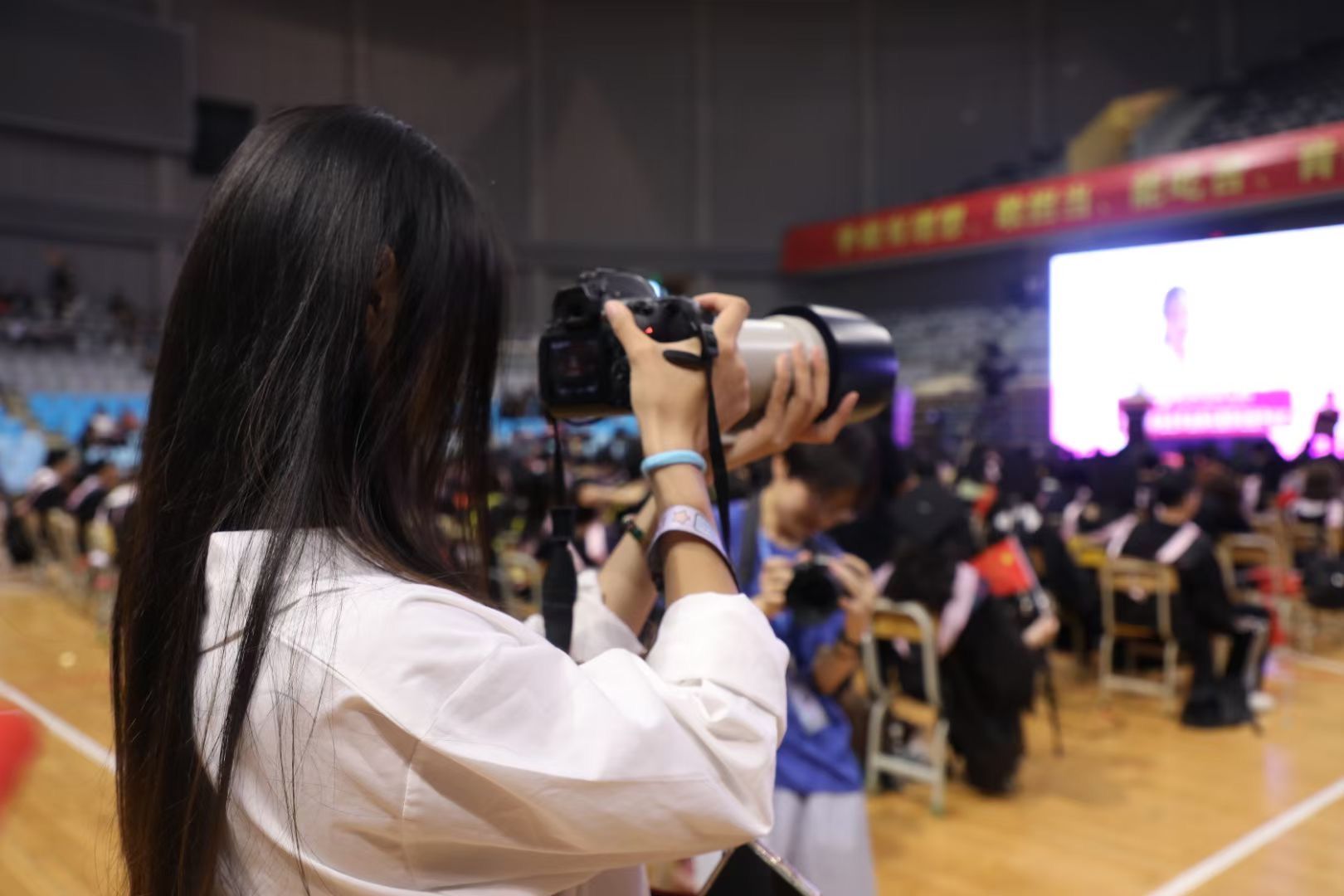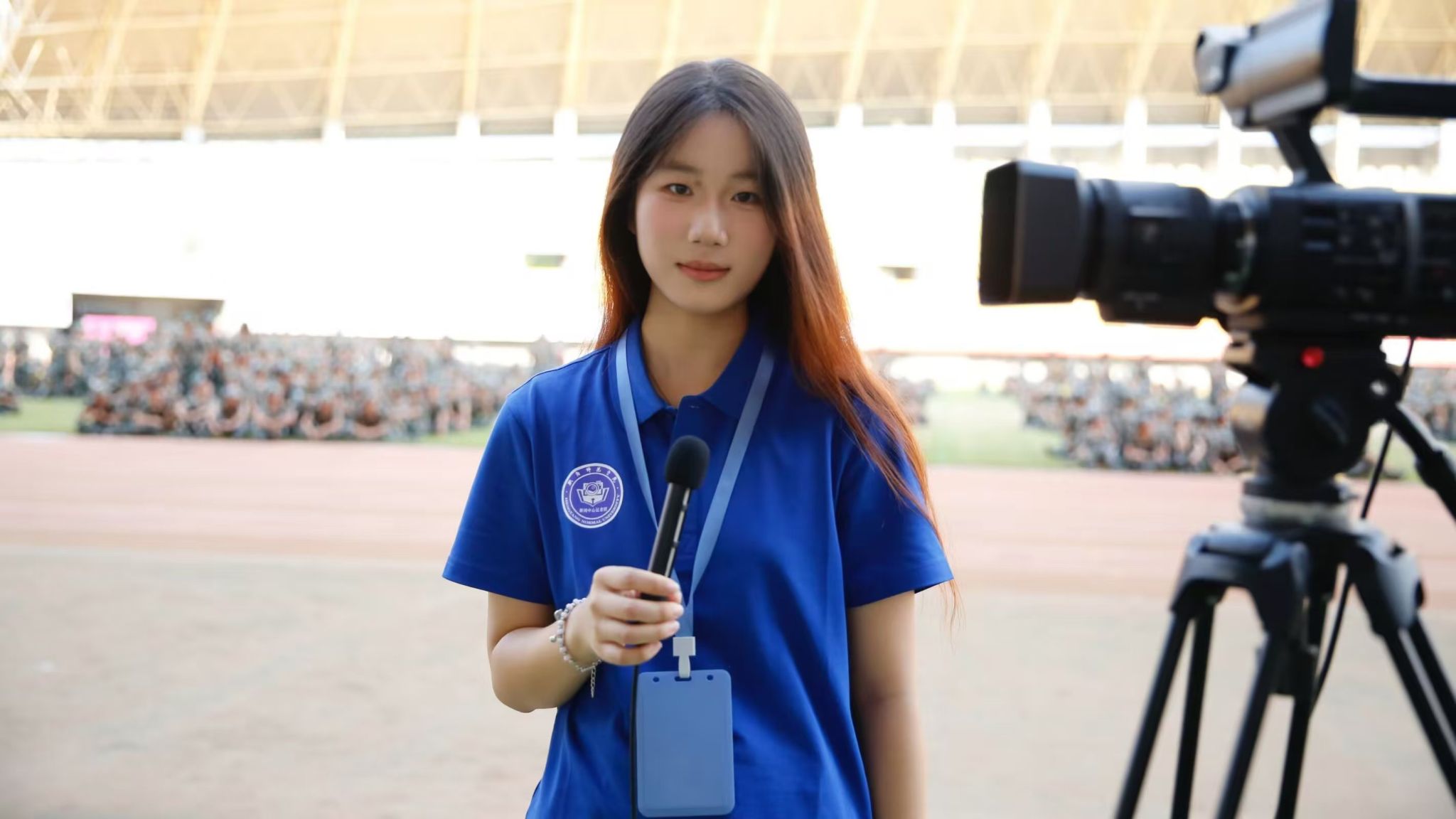 他们在人群中穿梭采访