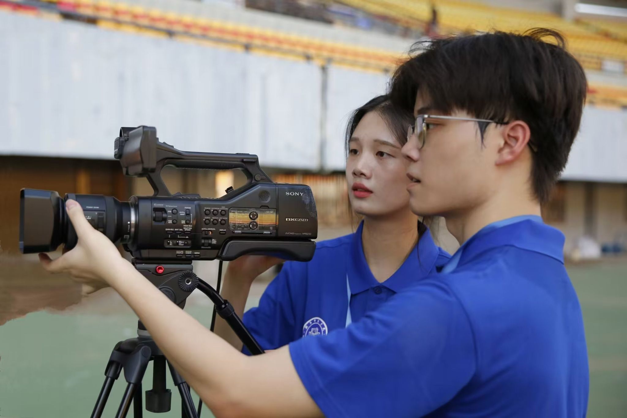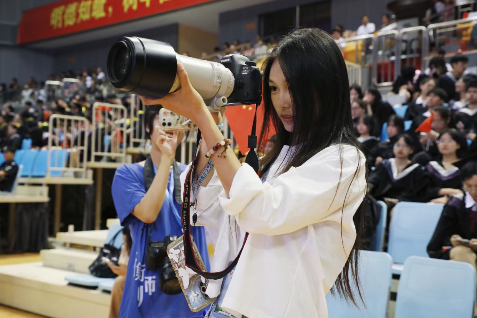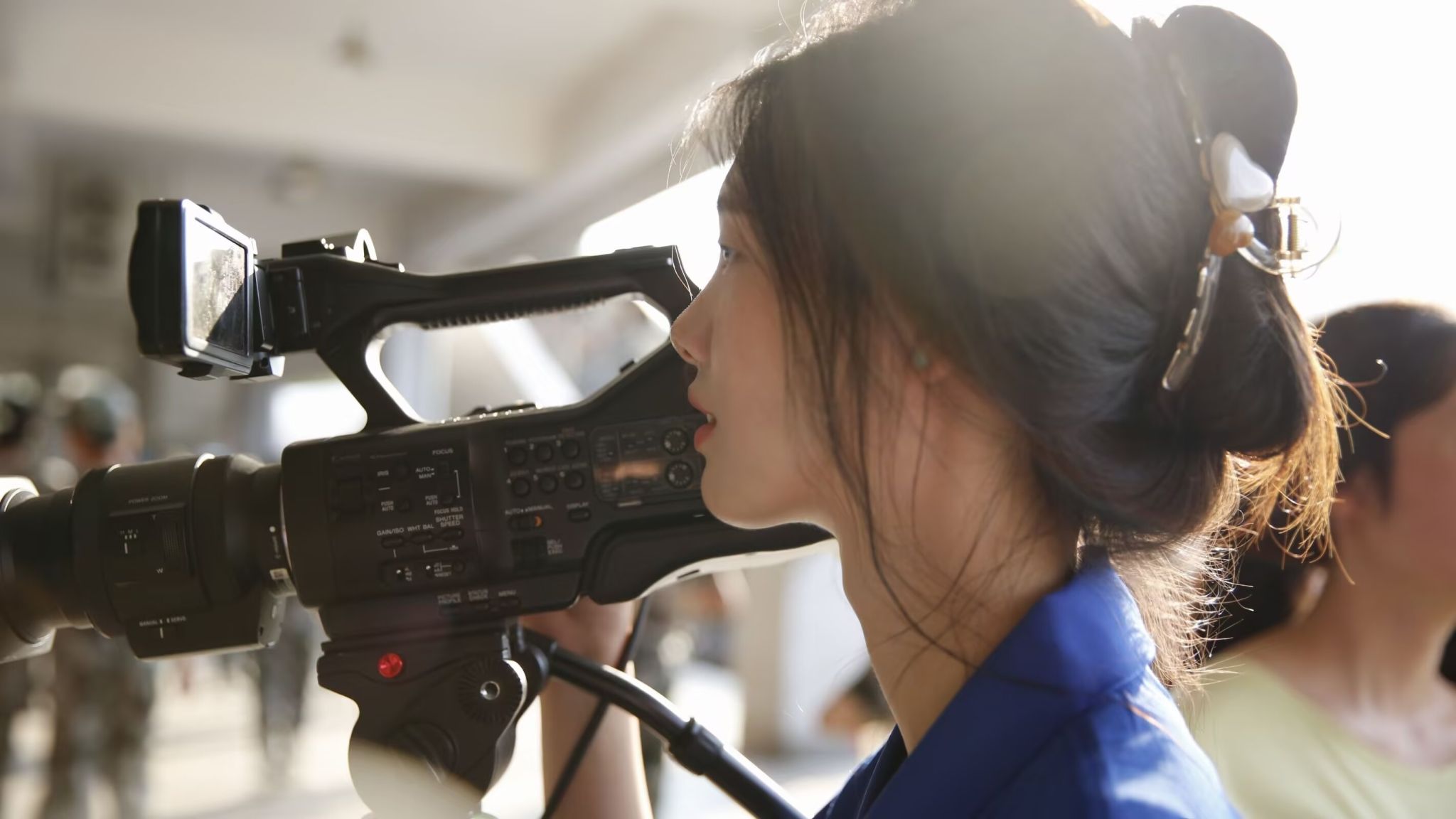 他们在人群中穿梭采访