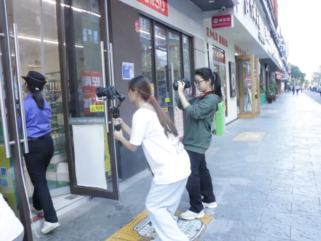 小组成员在蒸湘区融冠乐街拍摄中