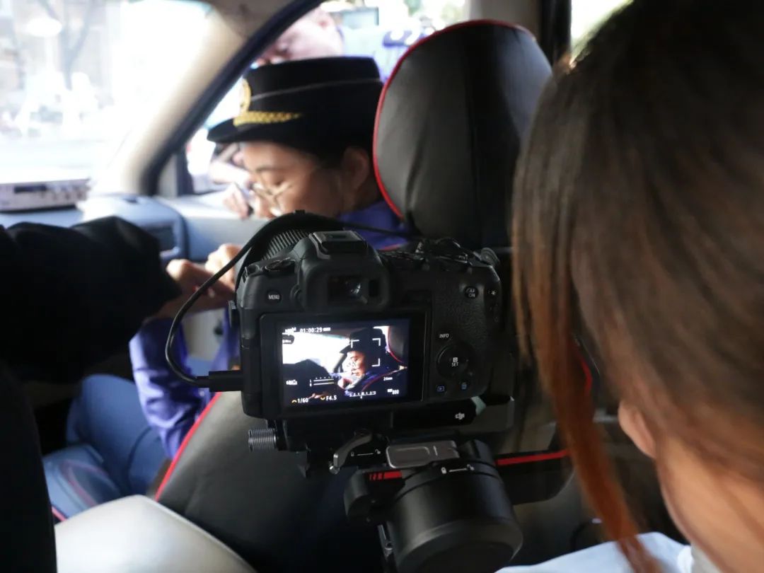 小组成员在车上拍摄中