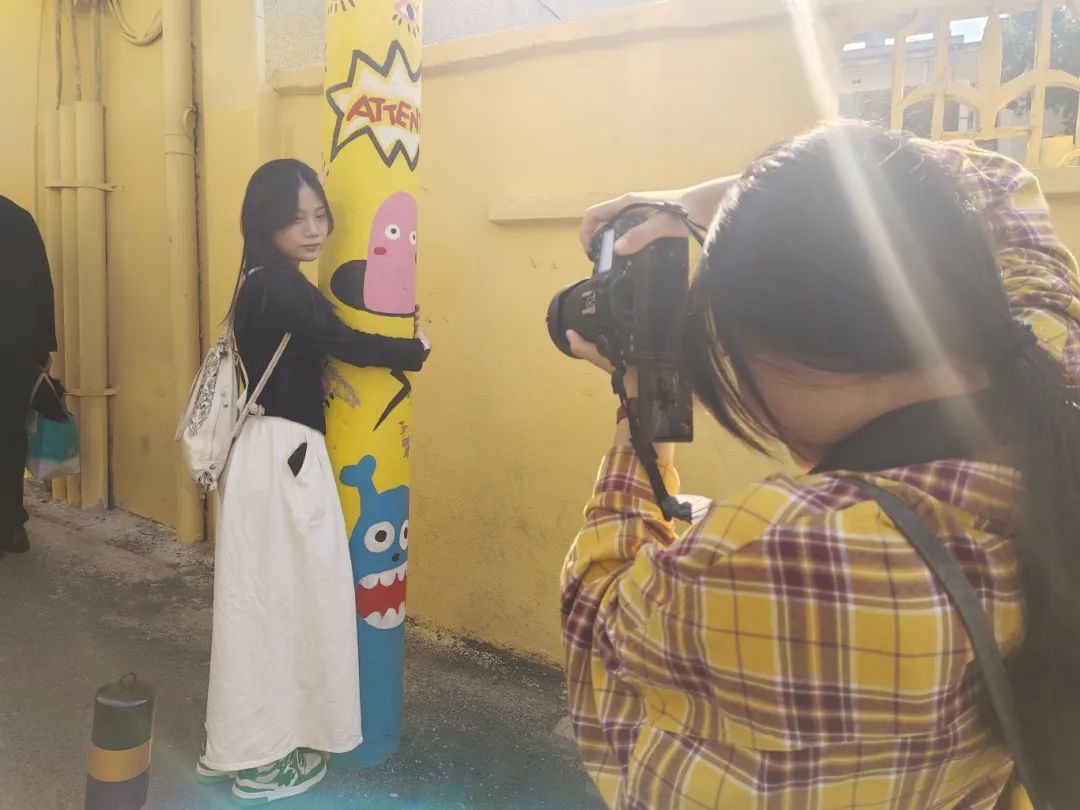 陈丽小组兵分两路,一路去往保卫里、建湘工业园进行拍摄,另一路则是去往南湖公园取景。她们在不同的地方寻找打卡点,用最短的时间收集到了尽可能多的素材。