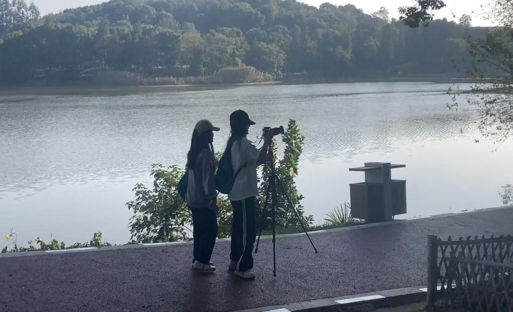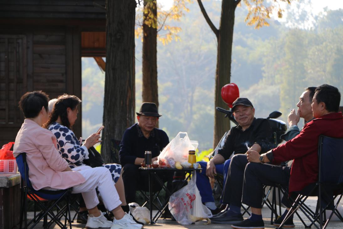 陈丽小组拍摄的南湖公园里游客们在惬意聊天