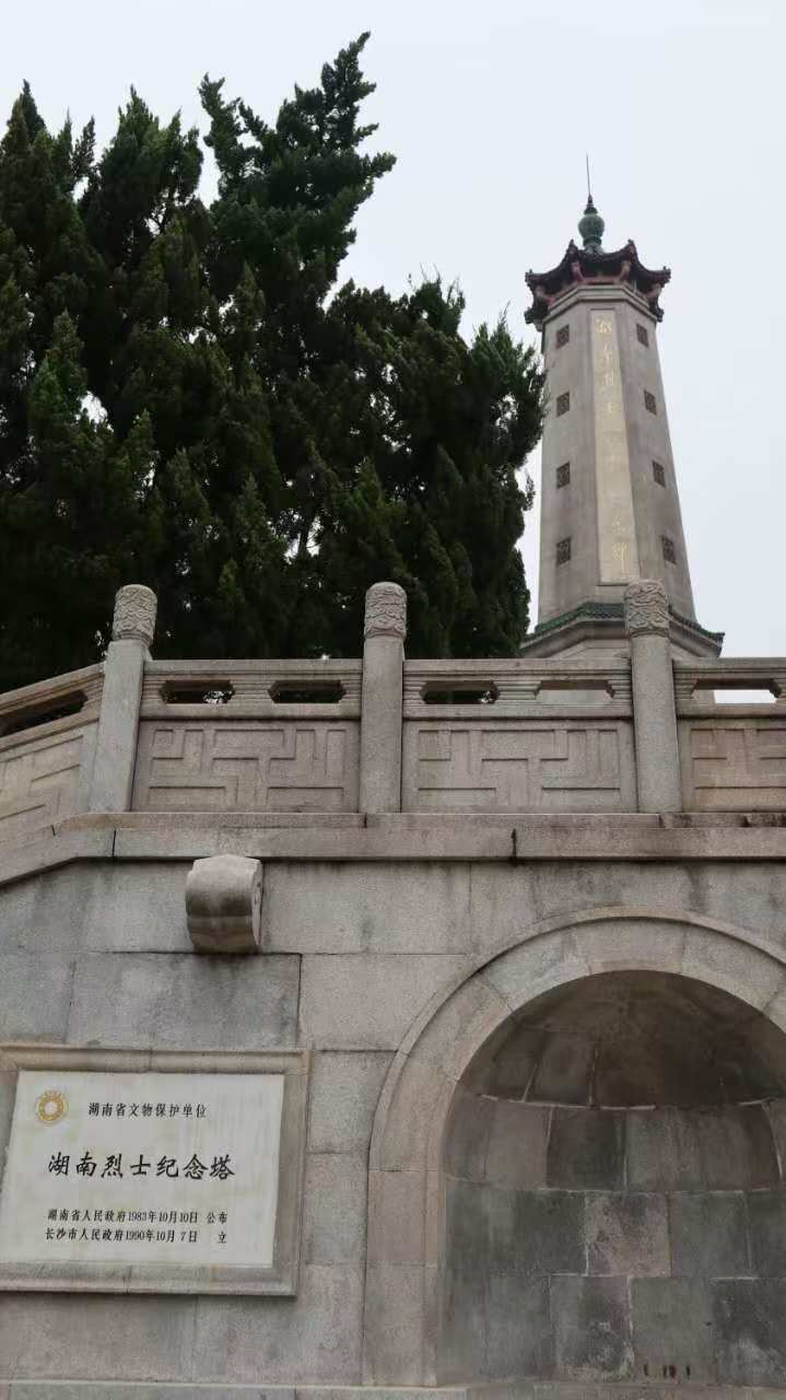 1950年10月,湖南省首届各界人民代表会议二次决议:为了纪念近百年来,特别是新民主主义革命时期以来为中国人民解放事业而英勇献身的湖南革命烈士,决定修建湖南烈士纪念塔。1957年动工,1959年竣工。塔系花岗石结构,塔堂合一,通高58.6米,正面嵌毛泽东题写的汉白玉石碑塔下设纪念堂,堂内陈列湘籍著名英烈的生平事迹和烈士名册。