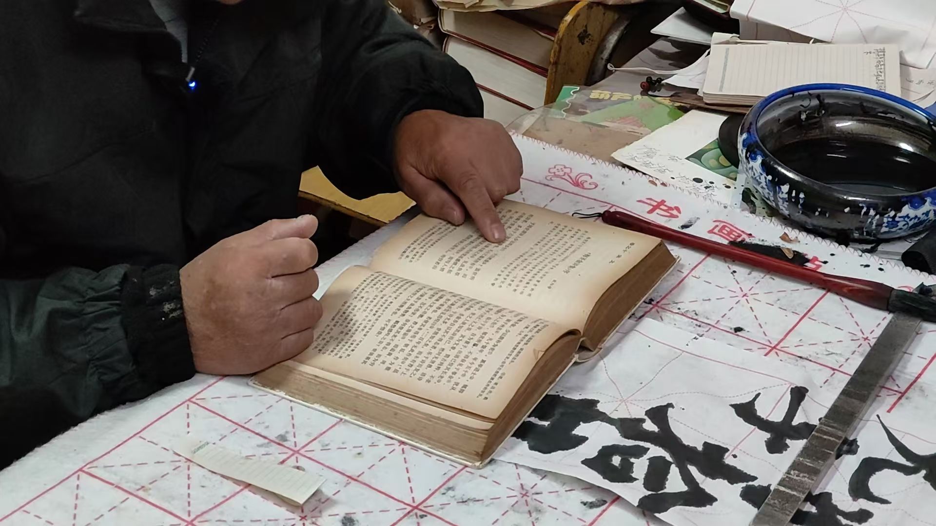 老刘给李娜小组成员讲解古书