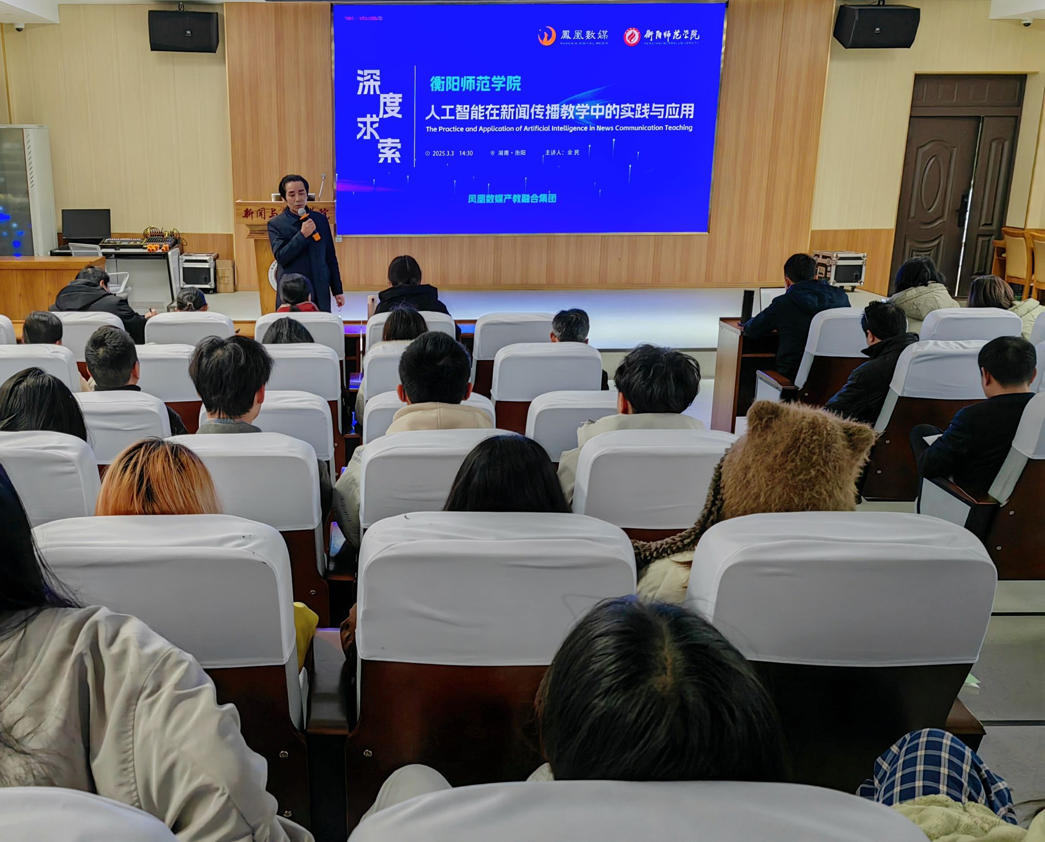 2025年3月3日下午,凤凰数媒产教集团资深项目负责人余民应邀在文A107举办了一场主题为“人工智能在新闻传播教学中的实践与应用”的专题讲座,WilliamHill中文官网全体教师和2022级部分员工到场倾听。