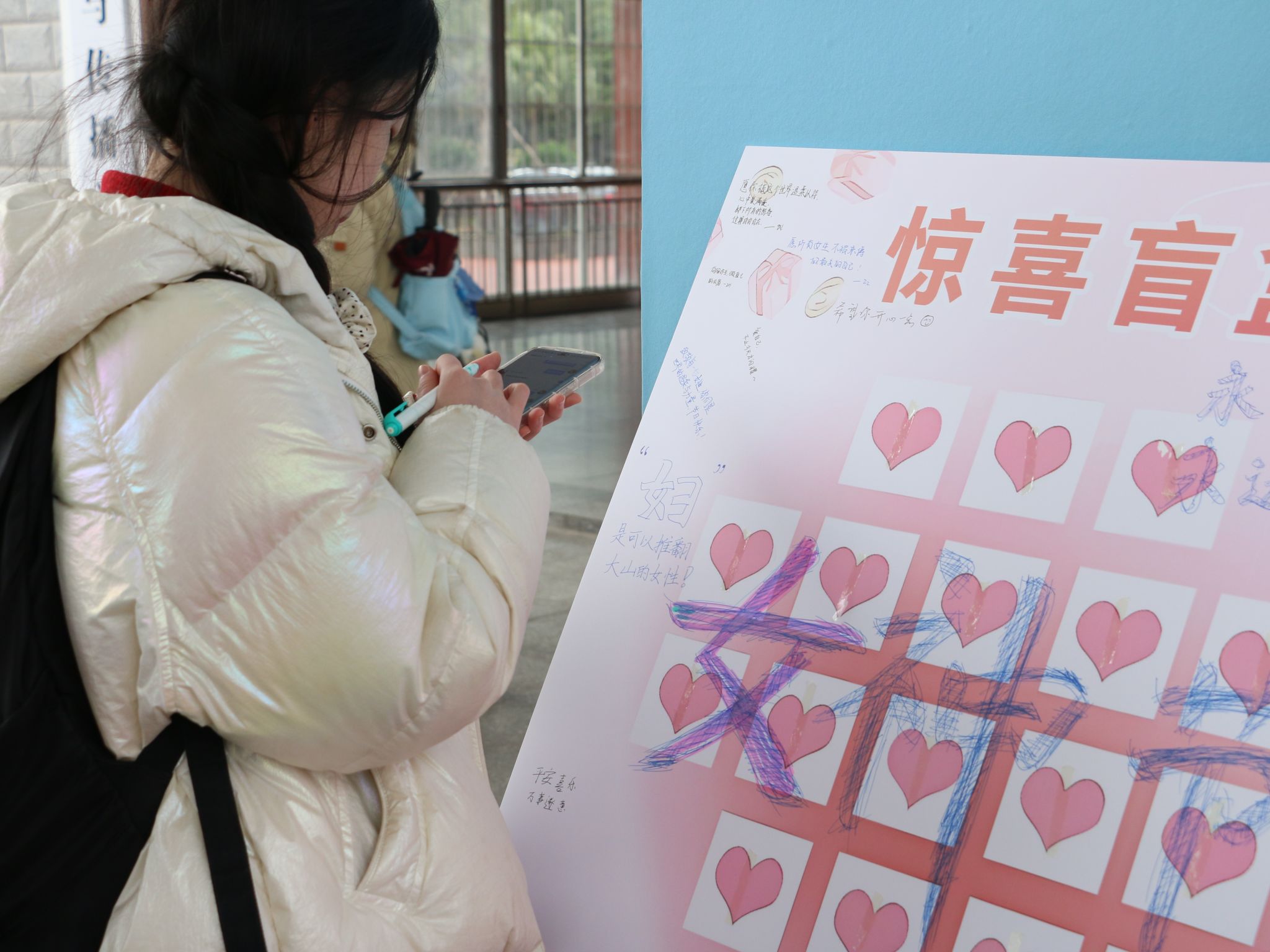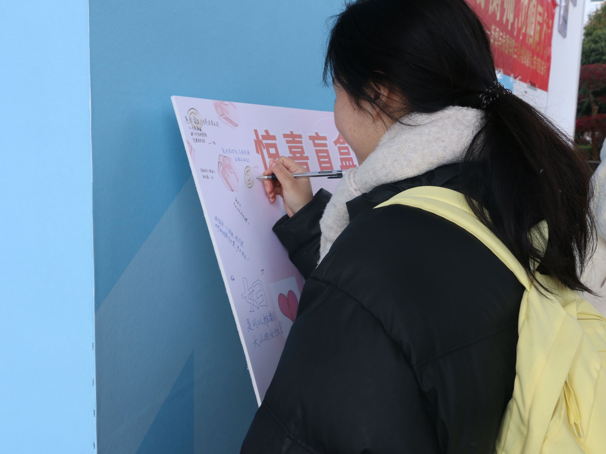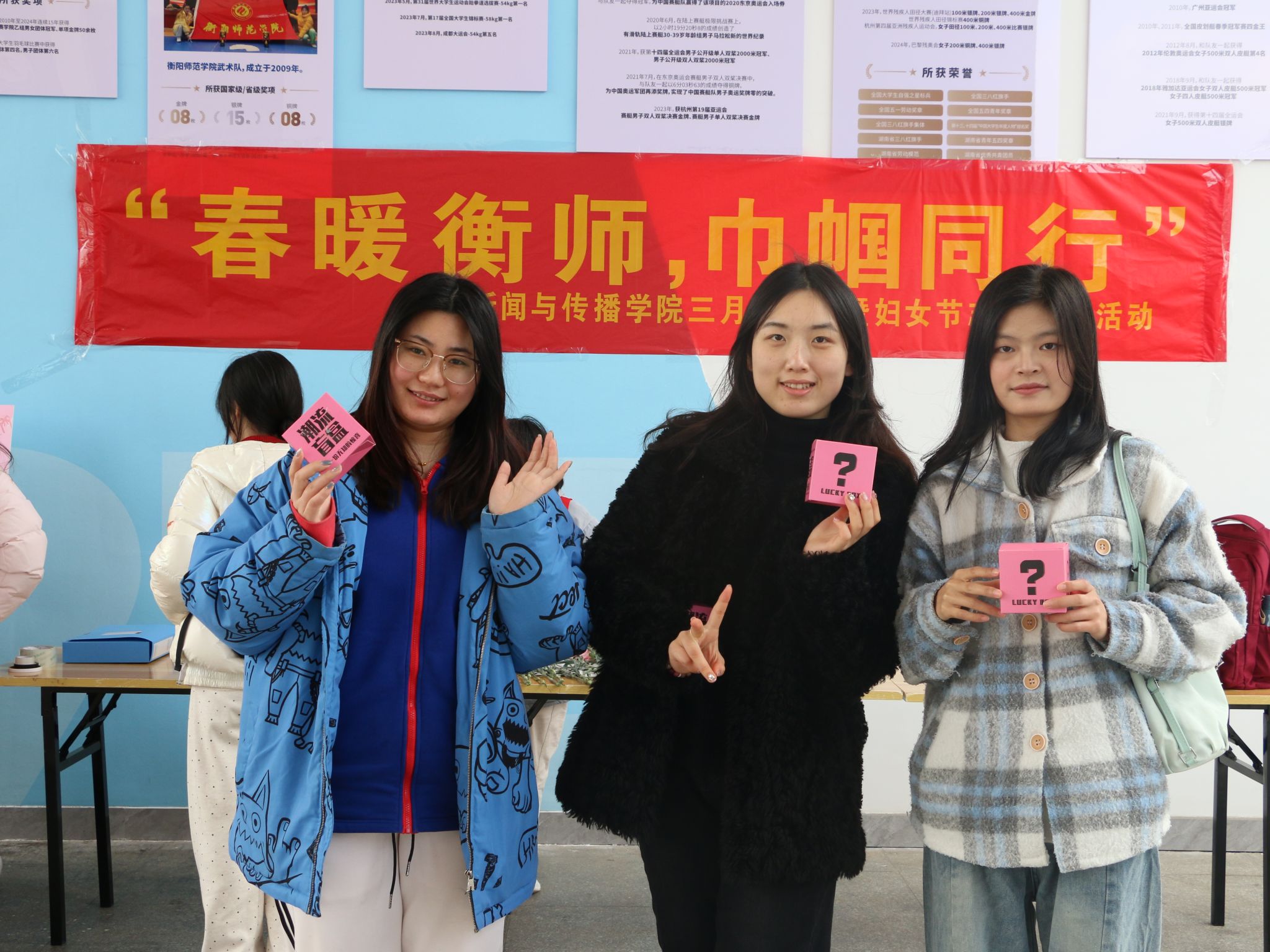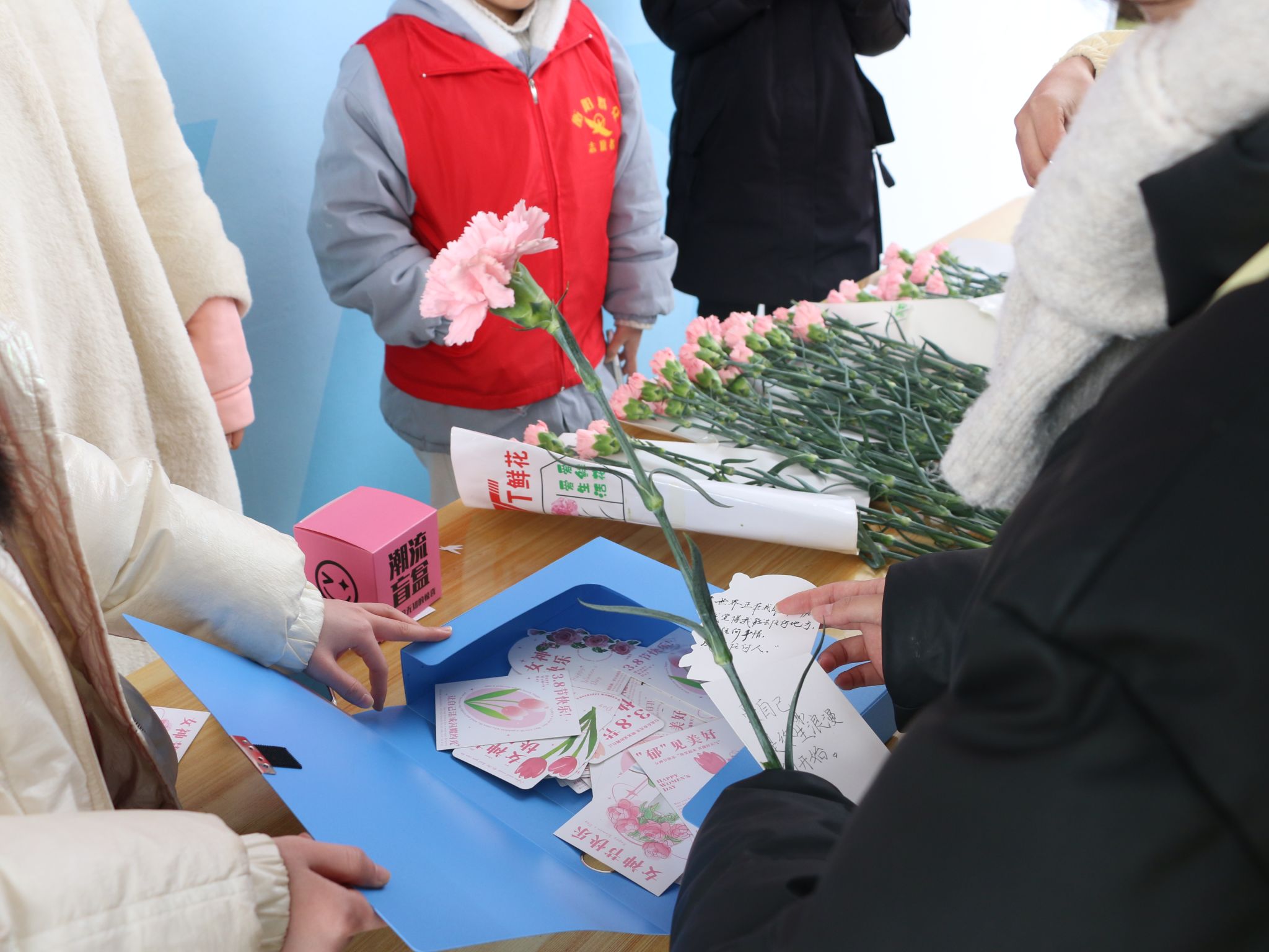 活动现场热闹非凡,参与者通过拍照打卡现场可以抽取幸运盲盒或随机选取精美明信片祝福一张。盲盒里精致的小饰品,明信片上手写的真挚话语,承载着独一无二的温暖与祝愿。