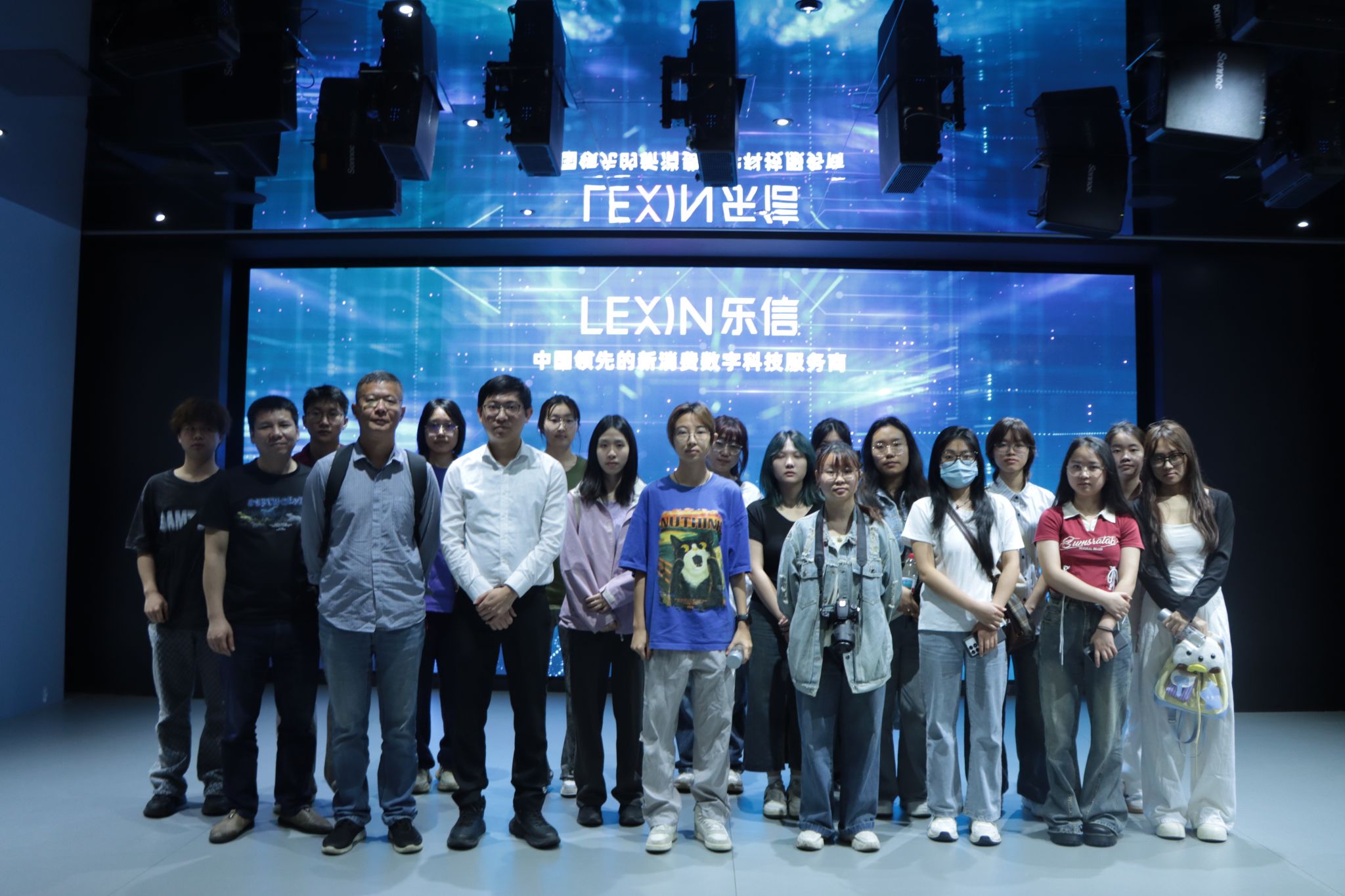 在乐信工作人员的引导下,我们走进充满科技感的展厅,通过动态演示大屏直观感受乐信在智能风控、消费金融、数字科技等领域的创新成果。屏幕实时跳动的数据与可视化案例,生动展现了乐信如何通过AI技术实现精准用户服务,以及其在“金融+科技+场景”生态中的核心布局。同学们对乐信的数字化运营体系发出阵阵惊叹,纷纷用手机记录下这一前沿科技的应用场景。