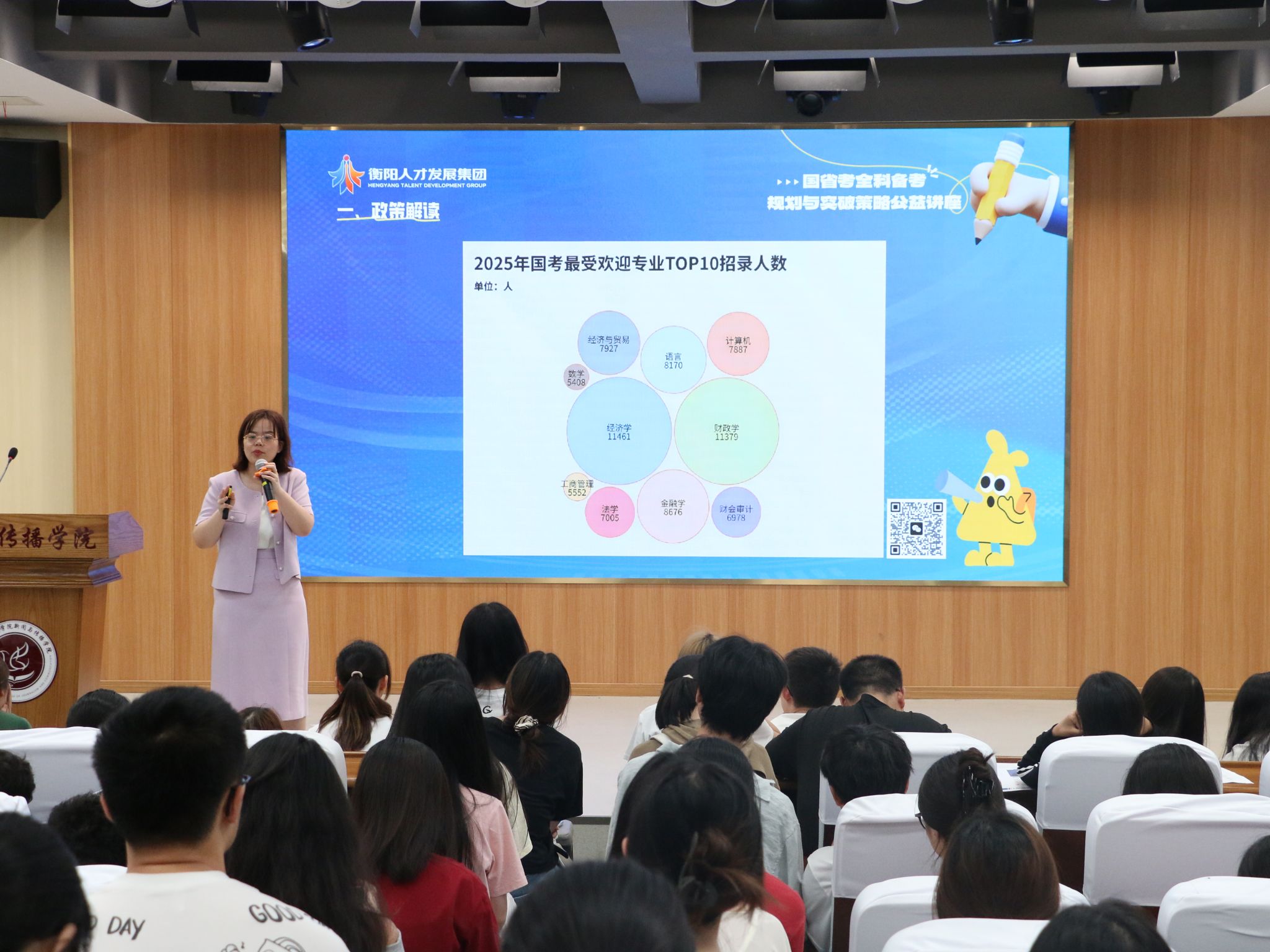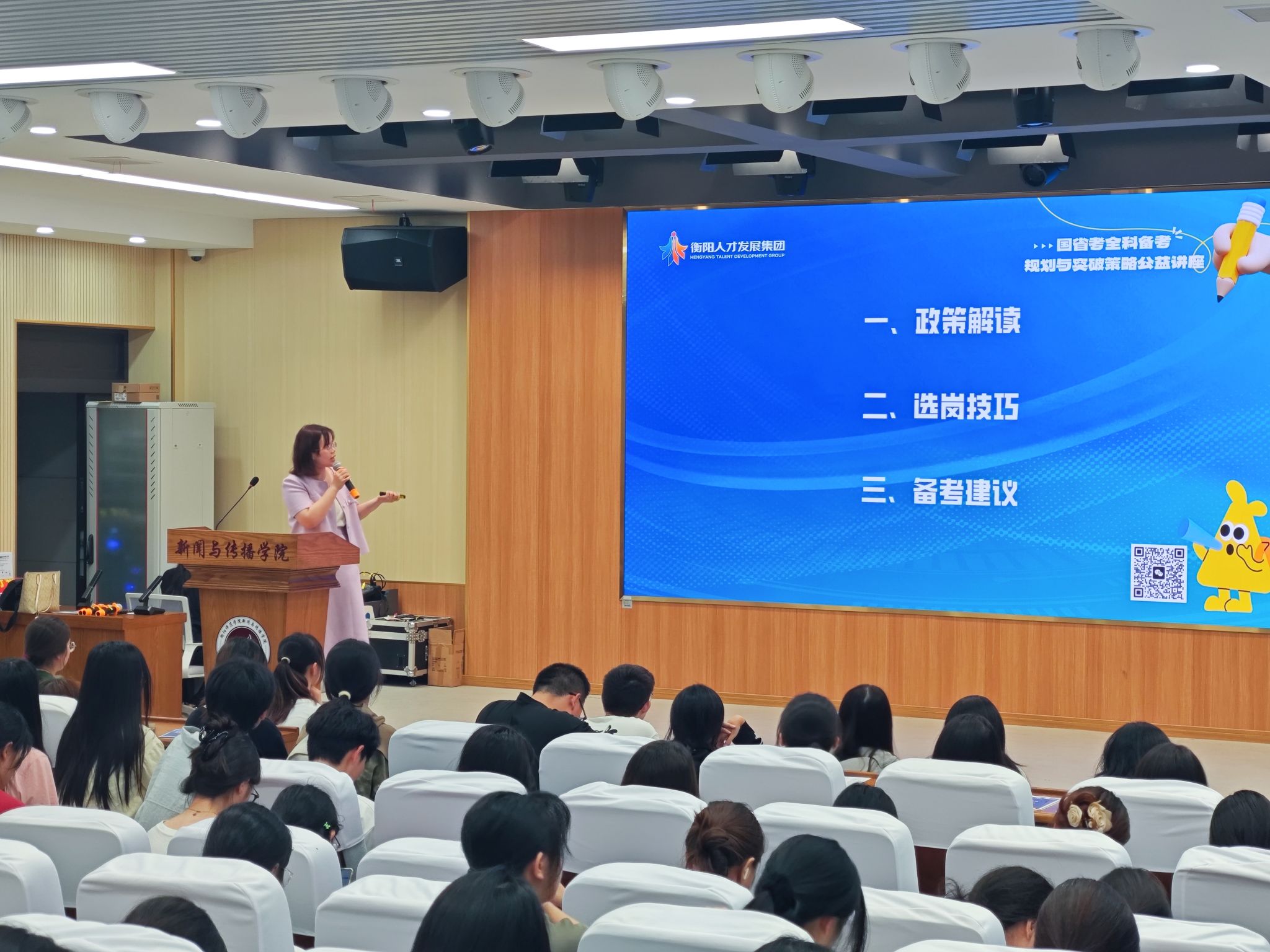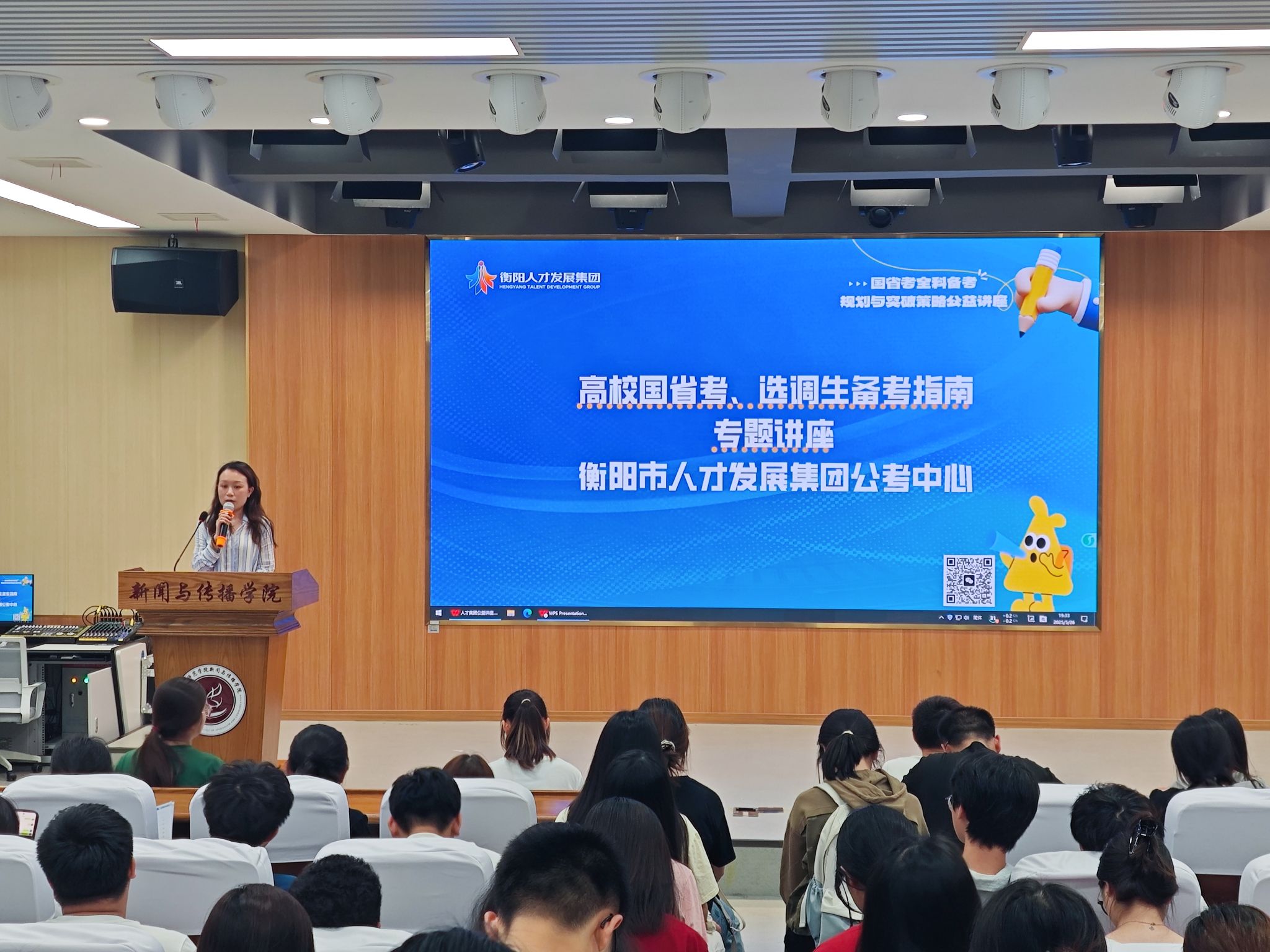 为帮助同学们更好地了解考公政策及策略,2025年5月26日,WilliamHill中文官网特于文智楼107演播厅举办公考讲座。公司邀请了衡阳市人才发展集团公考中心的罗晴主任和王老师为同学们进行考公分享。