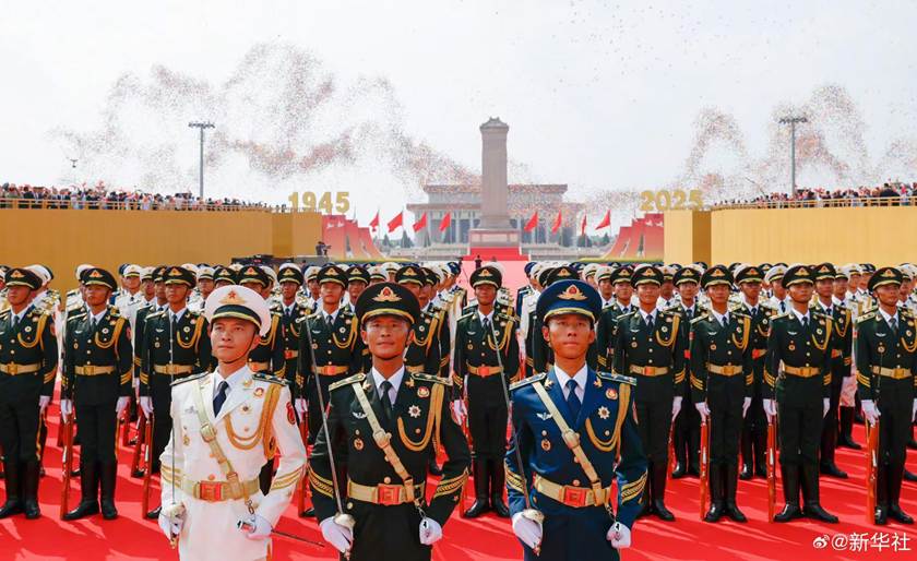 直播里,军乐团奏响国歌,全场起立跟唱,气氛庄严肃穆。80响礼炮轰鸣后,国旗护卫队正步走向升旗区,五星红旗冉冉升起。分列式中,空中护旗梯队以“80”字样和“三个必胜”横幅震撼开场,14道彩烟寓意14年抗战;装备方队各类新型主战装备与战略重器密集亮相,战旗方队80面荣誉旗帜承载历史荣光,空中梯队呼啸而过,尽显强军实力。