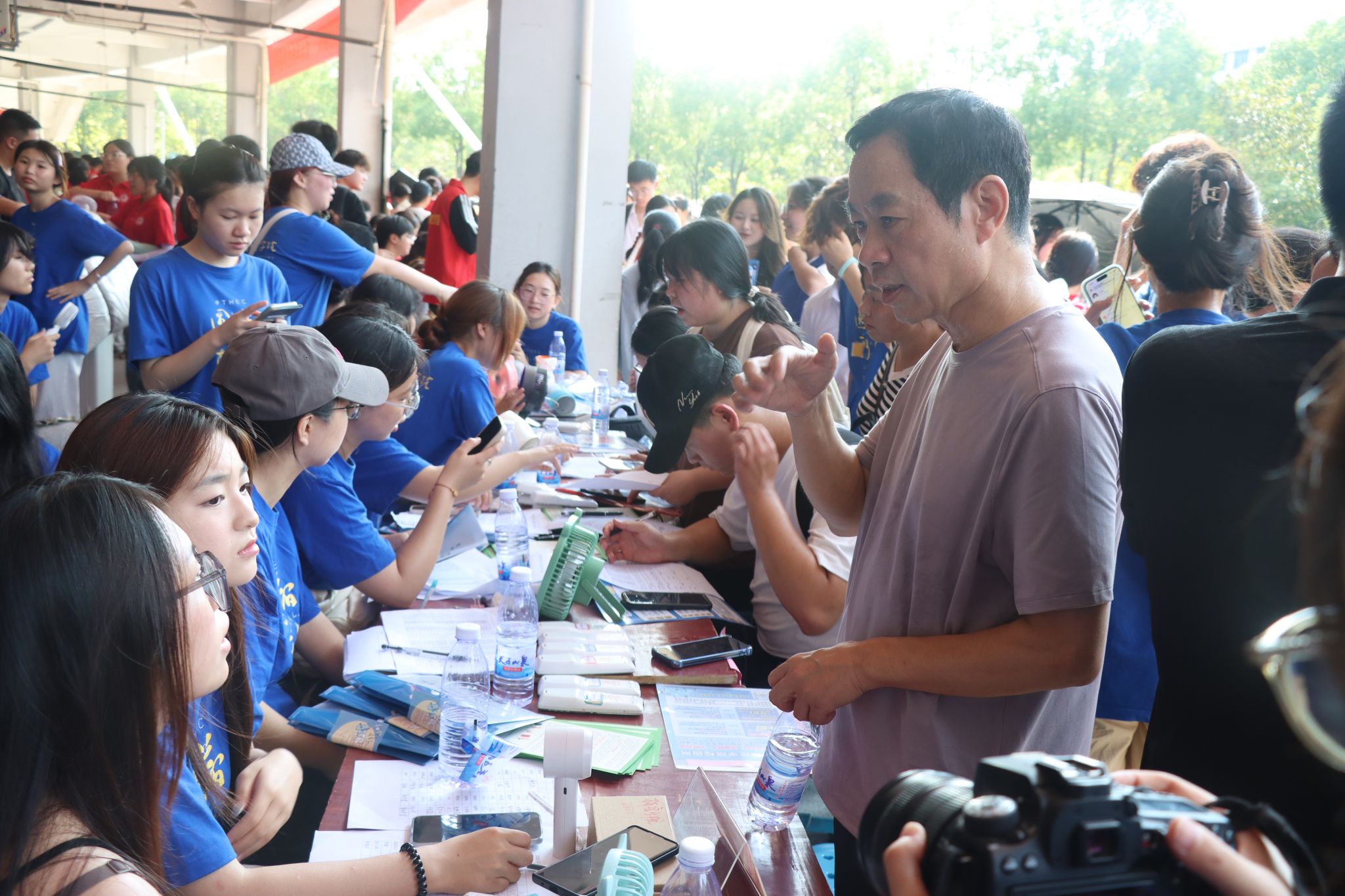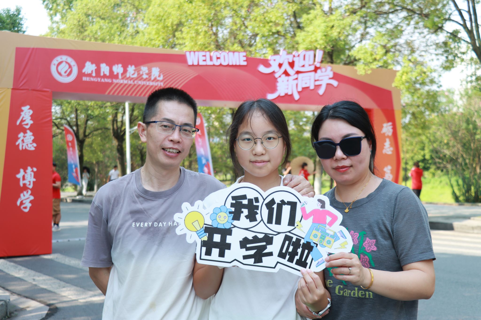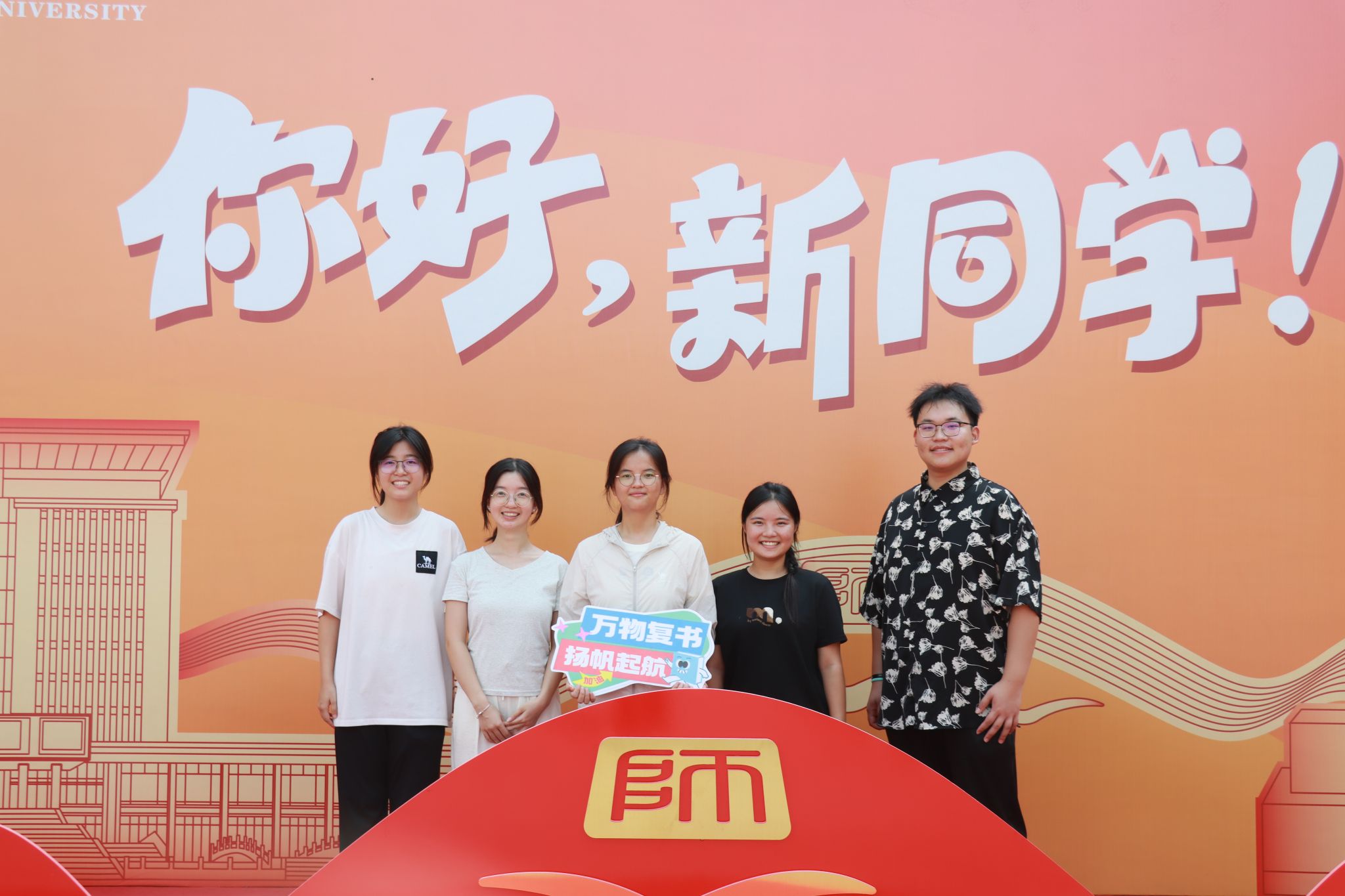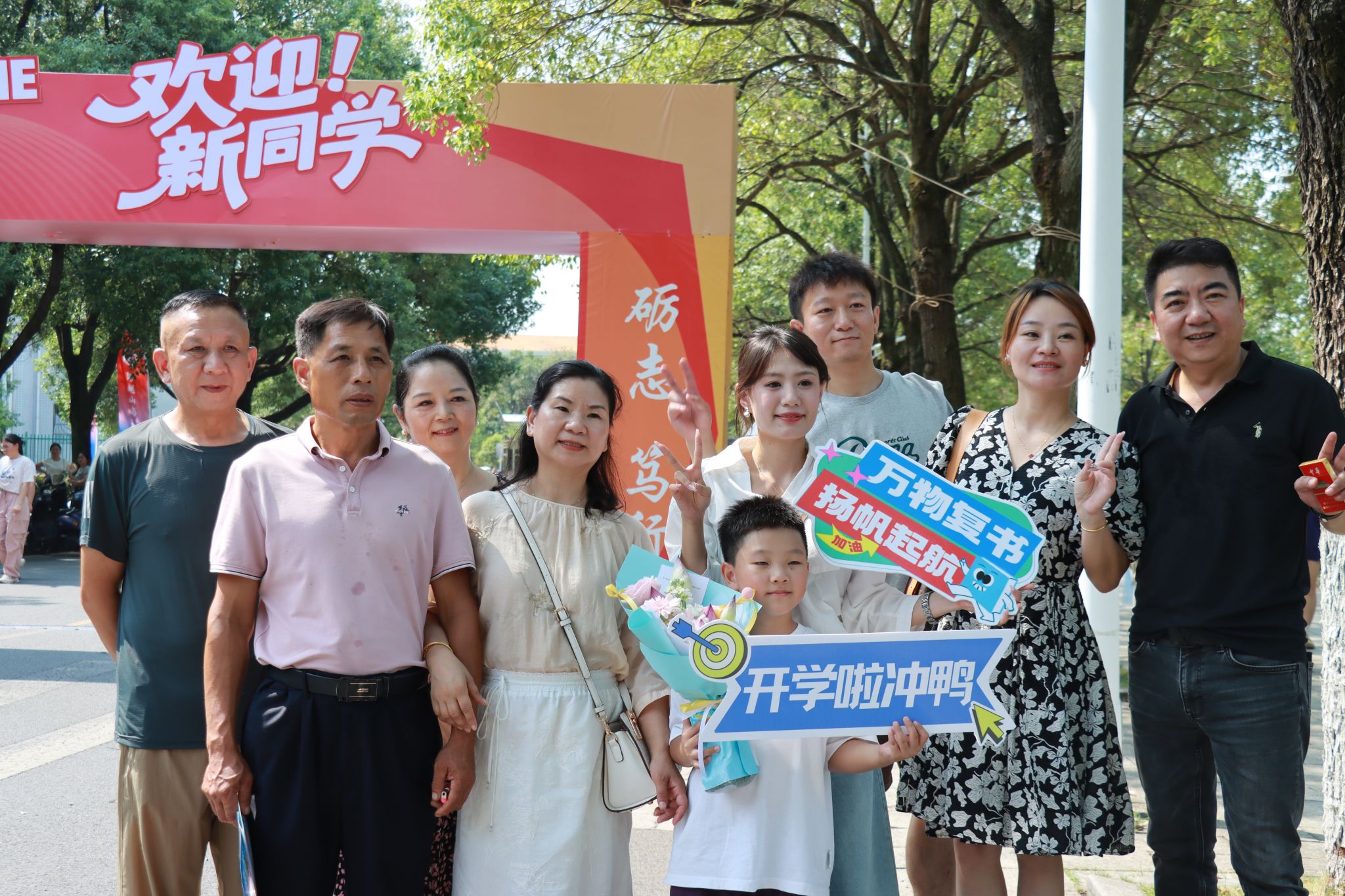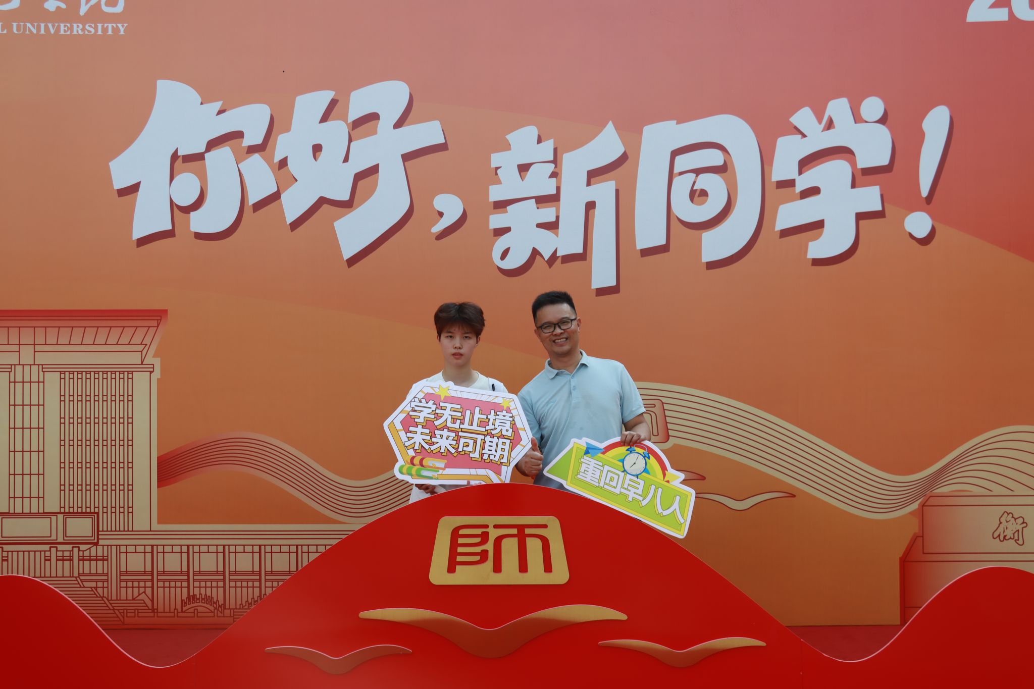 新生和家长们完成入学事宜之后,纷纷在打卡点与志愿者合影,记录下这成为“新传人”的第一份感动。