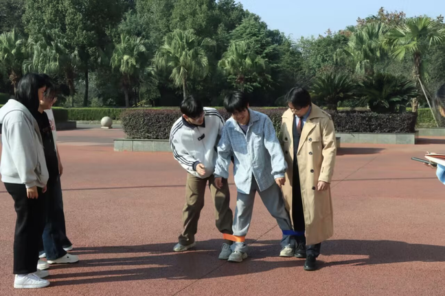 游戏“三人四足”进行中
