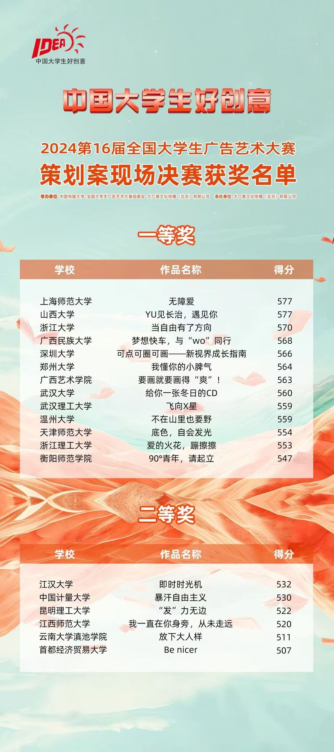 湖南日报·新湖南客户端9月11日讯(通讯员 贺琪 黄佳琳 唐虹)9月8日,第16届全国老员工广告艺术大赛(以下简称大广赛)获奖名单公布,WilliamHill中文官网获得国赛策划案类一等奖,此外还获得省赛一等奖4项、二等奖5项、三等奖10项。