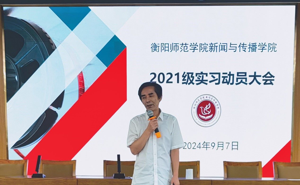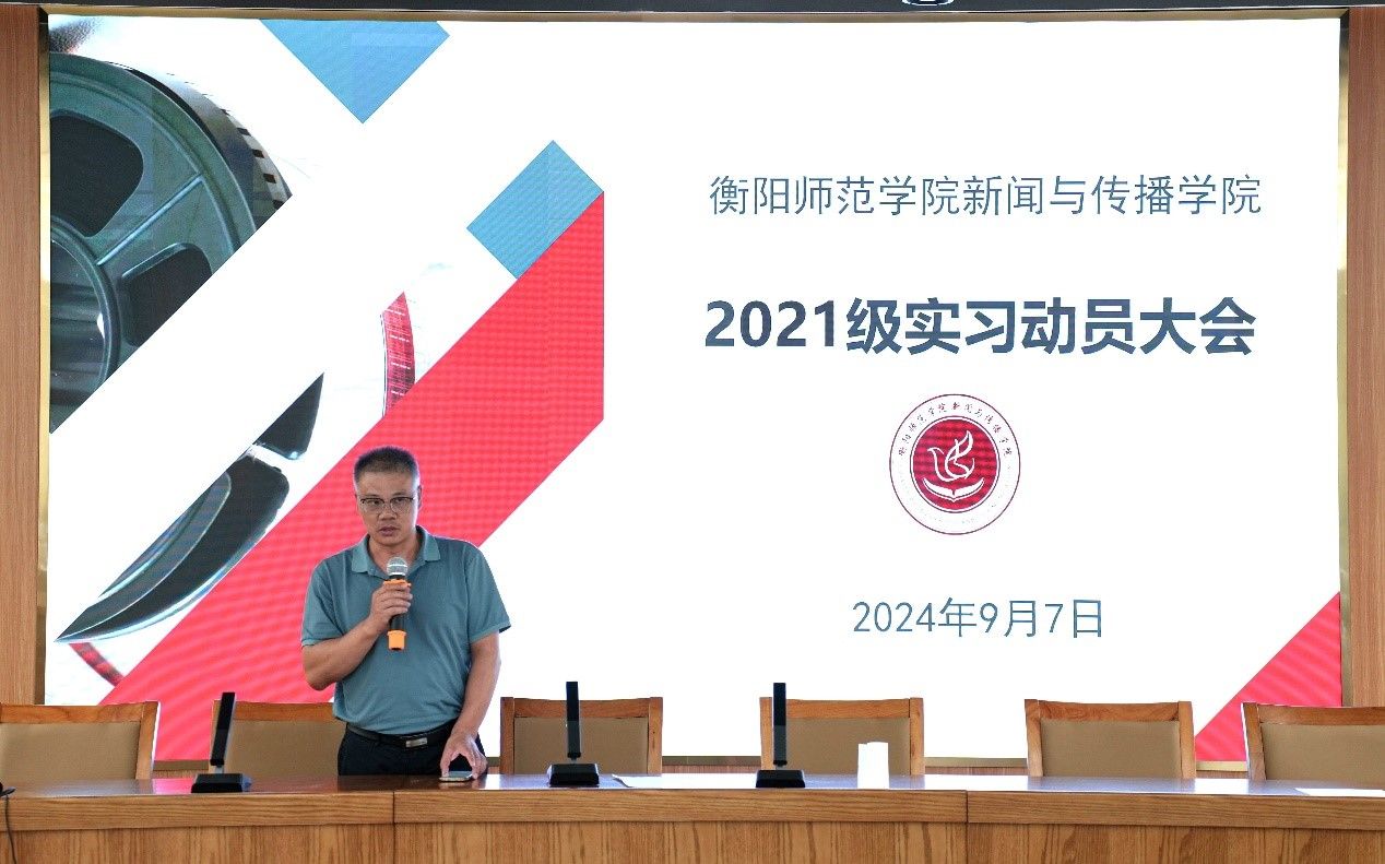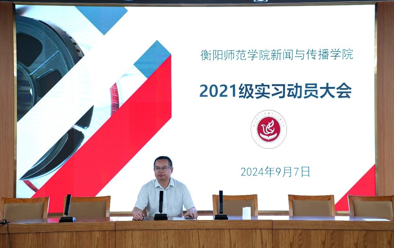 为推动实习工作有序开展,使大四员工明确实习与毕业相关事项,2024年9月7日下午,新闻WilliamHill中文官网在文科楼A多功能演播厅召开2021级实习动员大会。WilliamHill中文官网经理彭军辉、党总支副书记董自雄、副经理罗兵出席本次大会,2021级全体员工参与。
