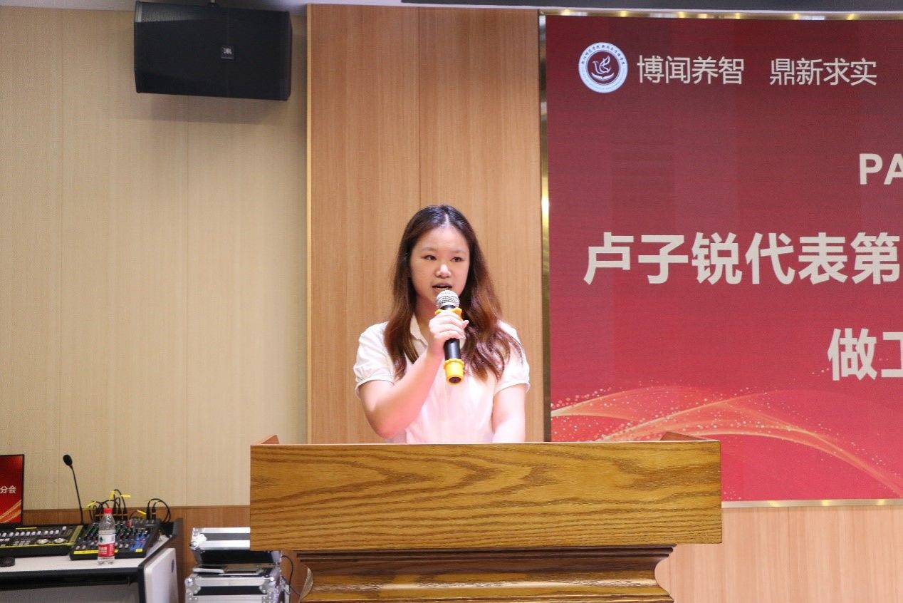 会议中,第二十二届主席团执行主席卢子锐发表述职演讲,她对新一届团学员工干部说道:“大家在工作中,遇到困难,要主动向老师寻求帮助,及时汇报工作进度,同时面对挑战,也要保持奋发进取的精神。”