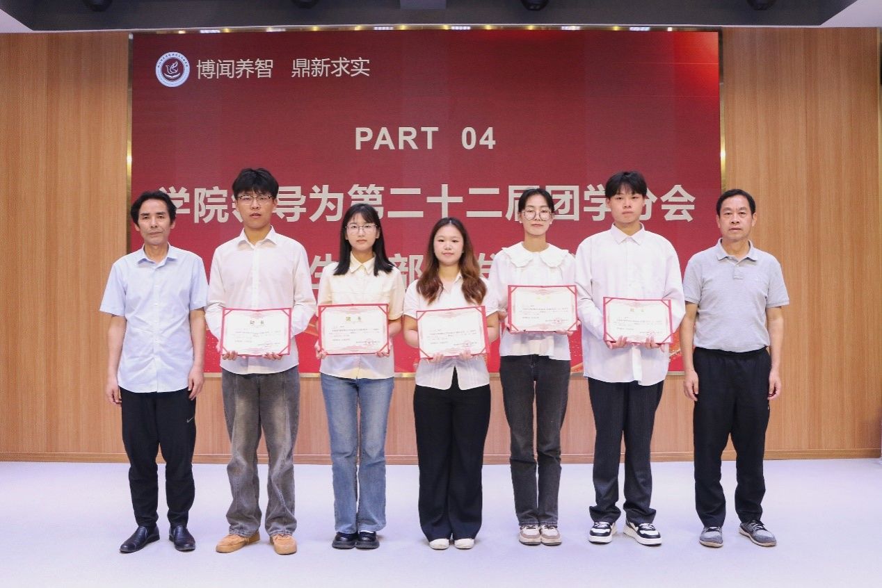 第二十二届团学分会的工作即将画上圆满的句号。大会上,党总支书记彭晖、经理彭军辉、党总支副书记董自雄、副经理邓庄、辅导员刘国杰和叶子凌为第二十二届团学分会员工干部颁发聘书。
