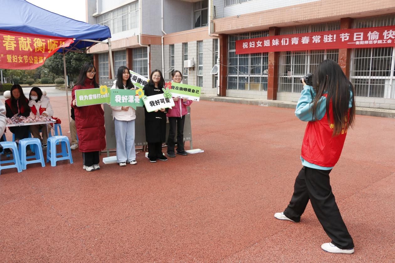 志愿者们还特别准备了精美的KT板,KT板上“我好漂亮”、“我在衡师爱自己”、“我最棒”等字样,无声地宣告着女性力量的魅力。参与者手持KT板,在镜头前尽情地展现自己最美的一面,志愿者们化身专业摄影师,捕捉她们最自然,最灿烂的笑容。无论是端庄大方的女老师,还是活泼可爱的女同学,都在此刻留下了自己的最美瞬间。