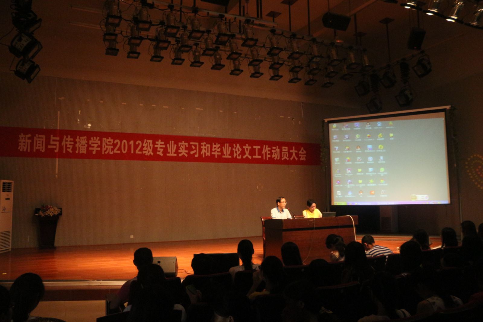 大会最后,彭经理为同学们细致讲解了实习报告和毕业论文写作等方面的要求及细则,并解答了同学们关于论文答辩的时间安排和流程方面的疑问。彭经理还代表领导老师们表达了对2012级全体同学顺利实习的美好祝愿。