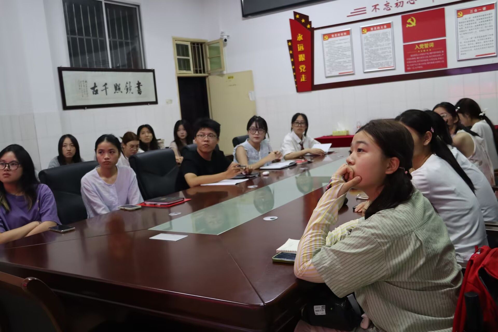 党员们正聆听习近平总书记重要讲话中